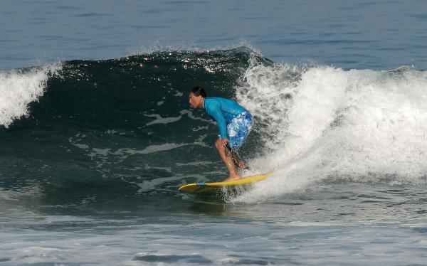 | This AMAZING shot was taken in Costa Rica by Matt Adame from Soul Arch Photography. The date is April 22, 2006, and it is about 7:30AM... the water temp is 85 degrees Fahrenheit and the air temp is about 90... what a sweet wave... I remember the amazing feeling as I made the bottom turn and I could feel the wall of water rushing by me just inches from my face ...and I was thinking: "I sure hope Matt got a shot of this one!" |